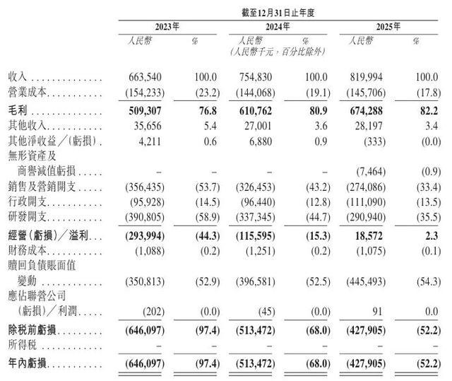 群核科技2025年营收同比增长显著,毛利率大幅提升至82.2%。尽管按会计准则计算,公司2023年、2024年及2025年净亏损分别为6.46亿元、5.13亿元和4.28亿元,但经调整净利润已实现正增长。这一转变主要得益于其核心产品“酷家乐”及国际版“Coohom”的广泛应用,以及AI驱动的云技术带来的效率提升。