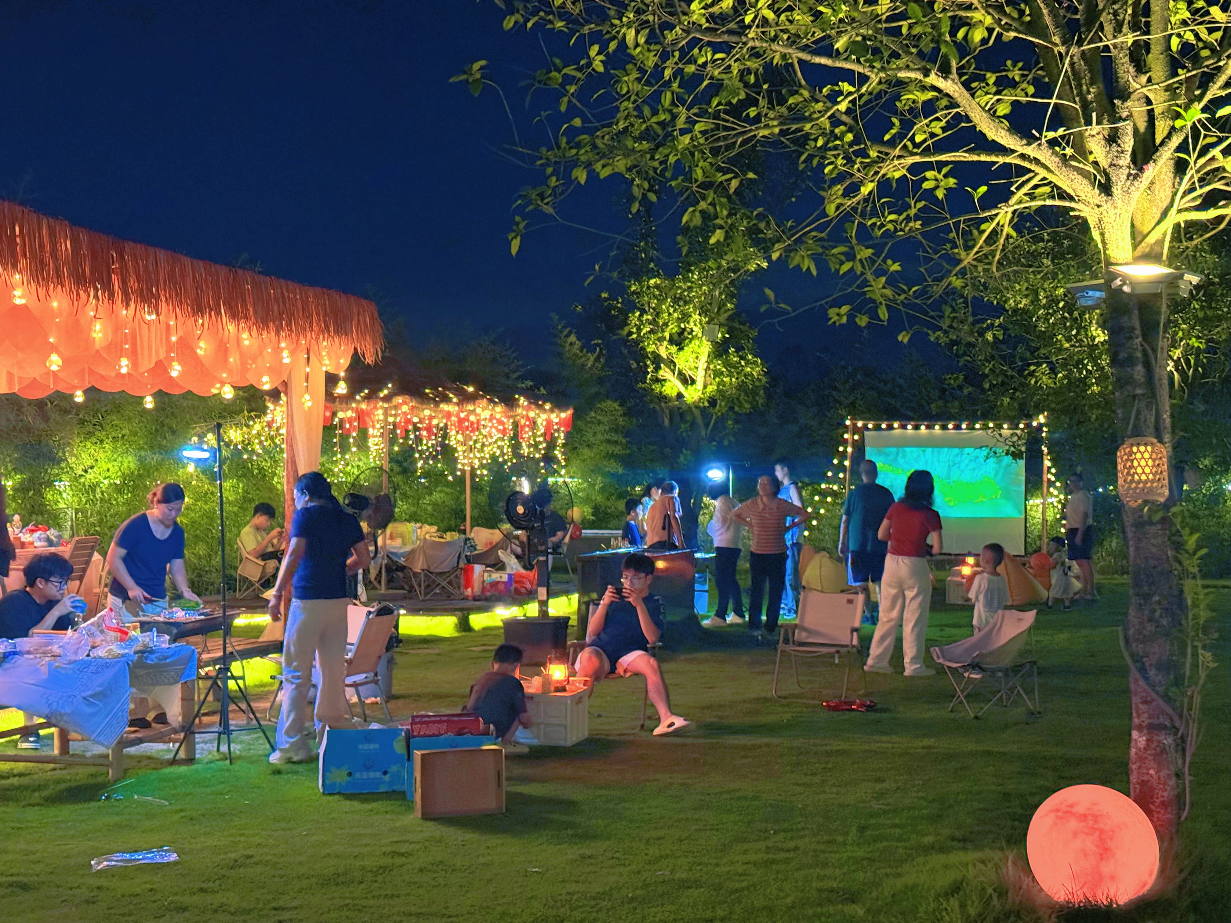 双节期间,众多游客走进美丽乡村,漫步三坑镇、龙颈镇、浸潭镇等特色乡村振兴示范带,打卡轻奢民宿,体验星空露营、围炉煮茶、篝火晚会等潮流休闲方式。各乡村酒店(民宿)精心策划主题活动,打造差异化体验:米墅·稻田野舍共享营地推出猜灯谜、艺术手作、水灯祈福、露天烧烤趴、瑶族篝火晚会等活动,让游客感受乡村夜晚的热闹与浪漫;大角禾场度假村则围绕“亲子”“体验”主题,推出国庆游园会、树棍面包DIY、月饼DIY、曲奇DIY、猜灯谜、溯溪探险、竹编竹笼等配套活动,满足家庭客群的互动需求。